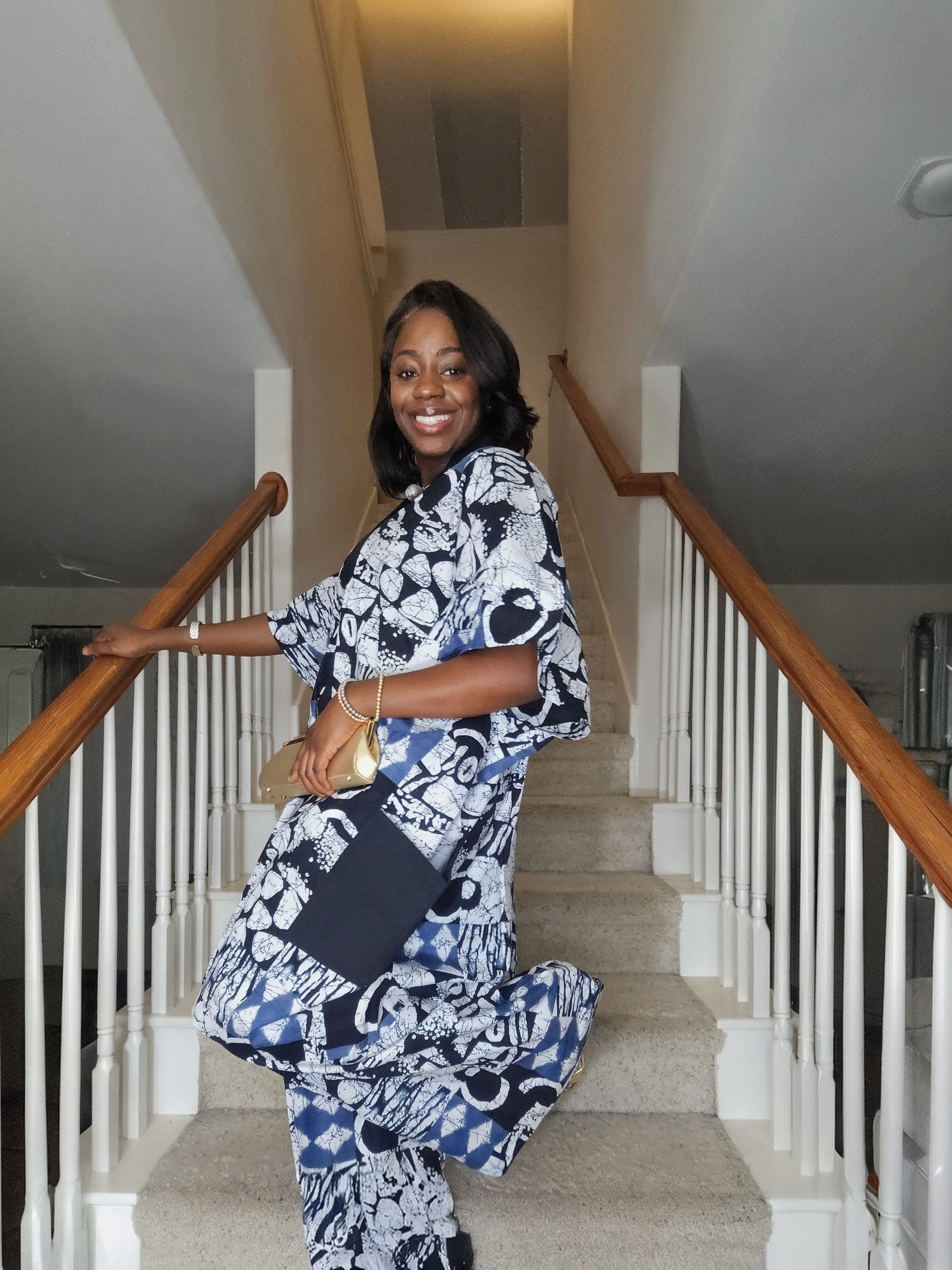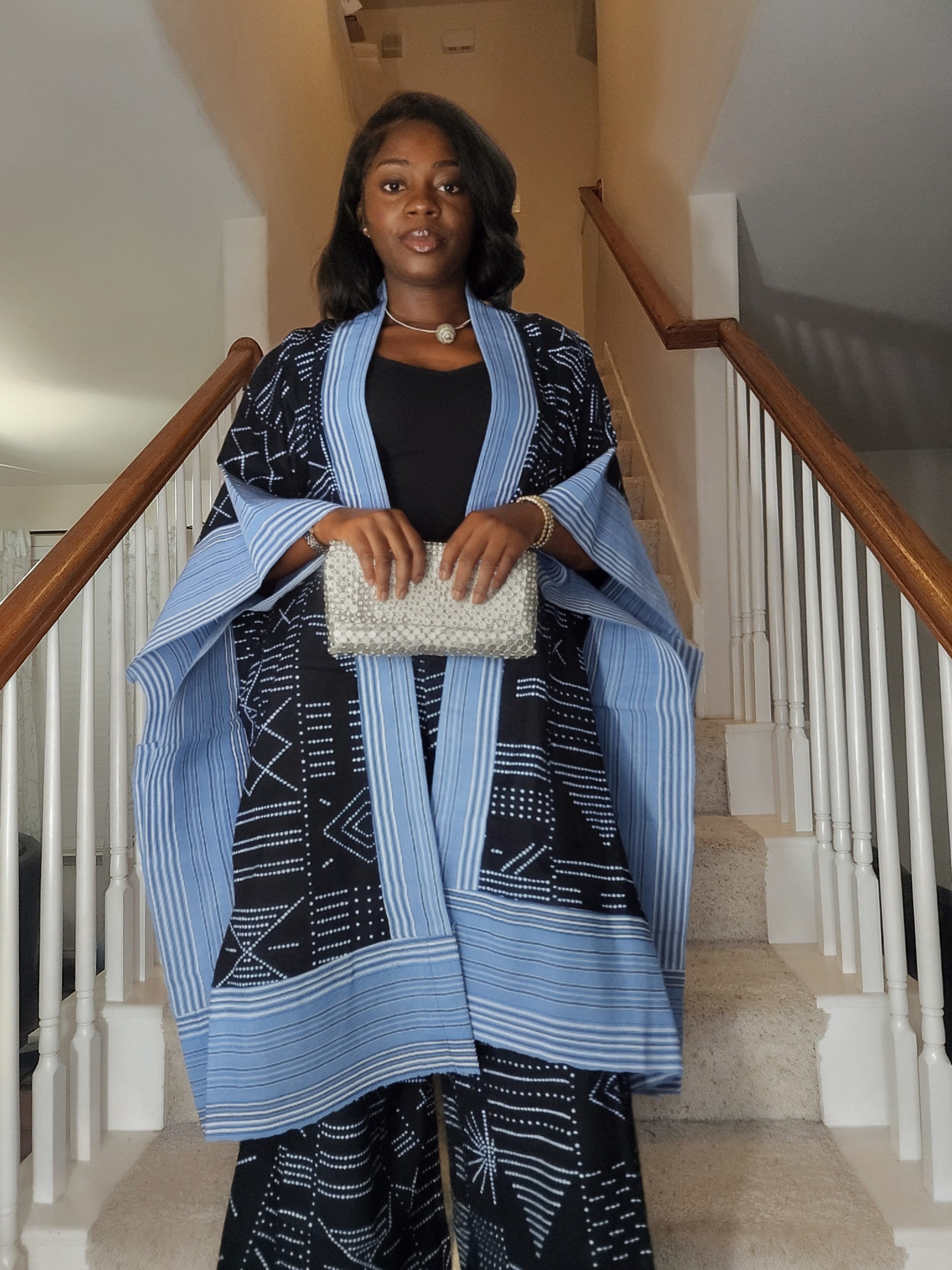 Blue Tie-Dye Inspired African Print Kimono Maxi Jacket