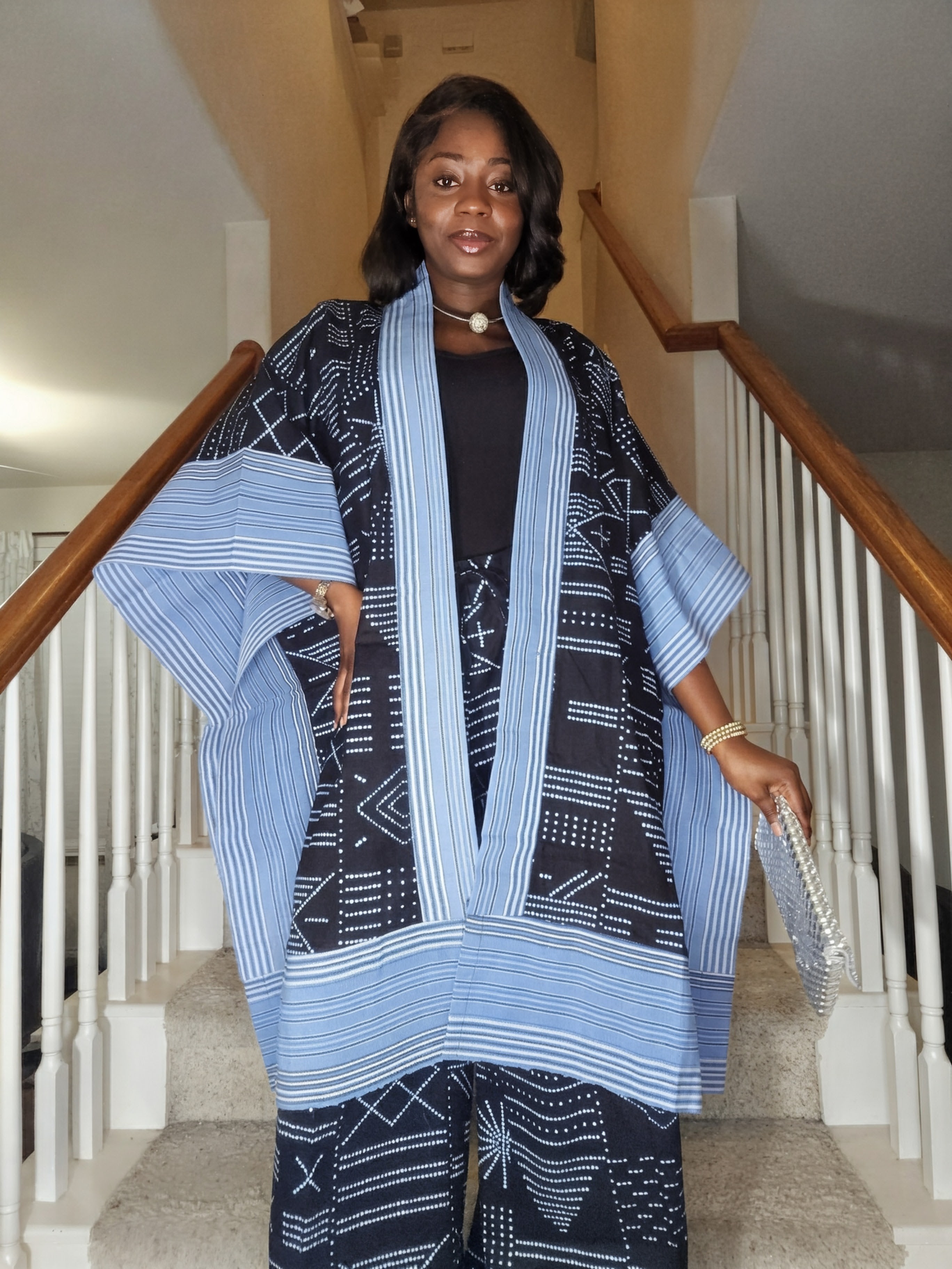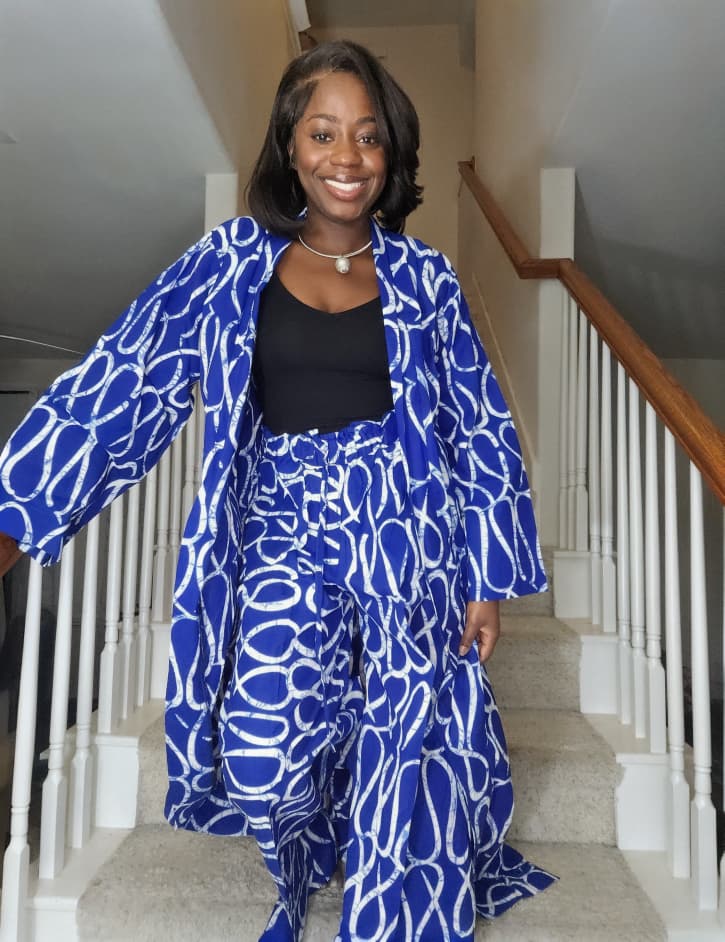 Azure Adire Kimono Two-Piece Set for Women