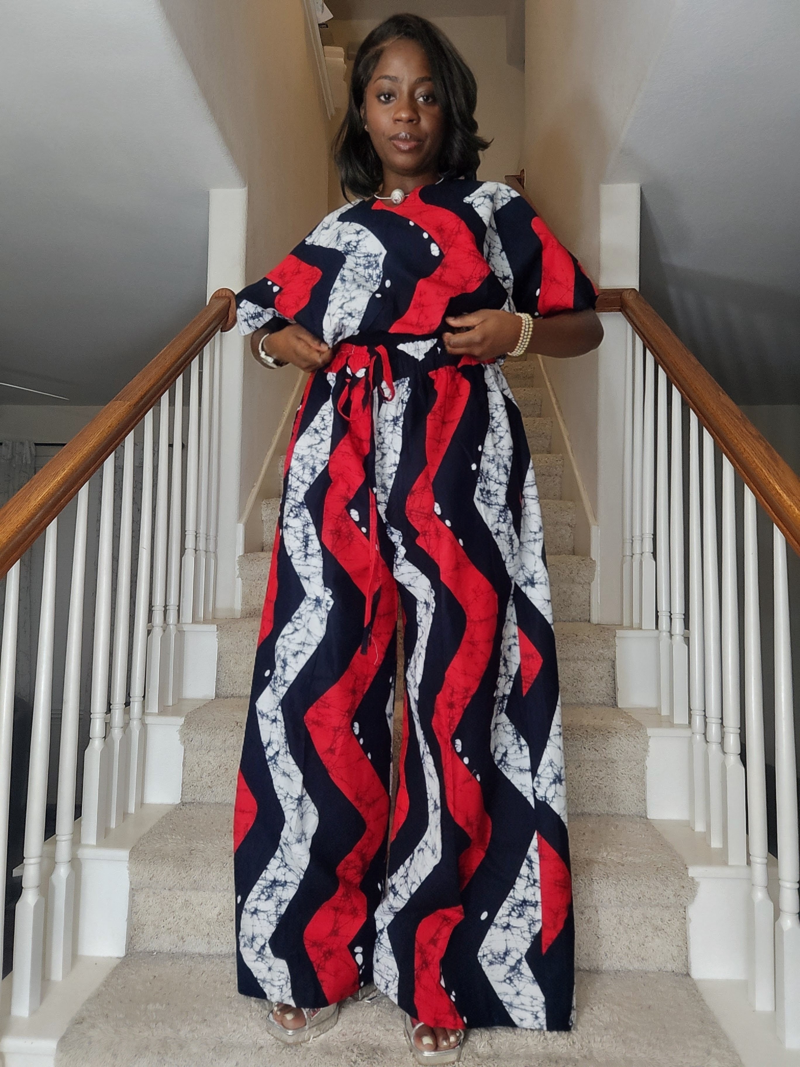Red & Midnight Navy Chevron Adire Two-Piece Set